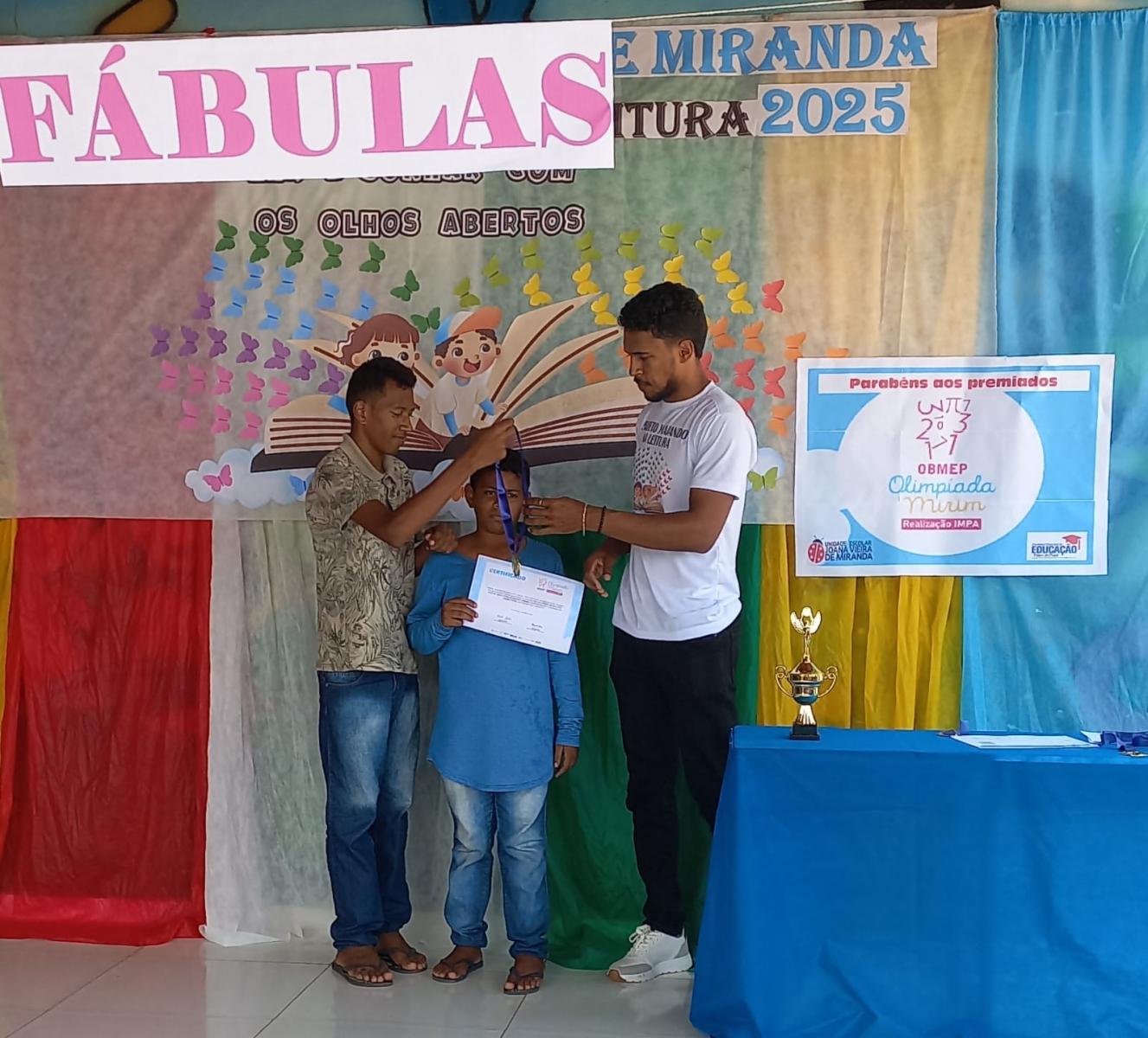 No dia 12 de dezembro de 2025, a U.E. Joana Vieira de Miranda realizou a cerimónia de certificação e entrega de medalhas para os premiados na OBMEP. Na mesma ocasião, aconteceu a culminância do projeto “Viajando na Leitura: ler é sonhar com os olhos”, celebrando o incentivo à leitura e o protagonismo dos estudantes ao longo do ano letivo.